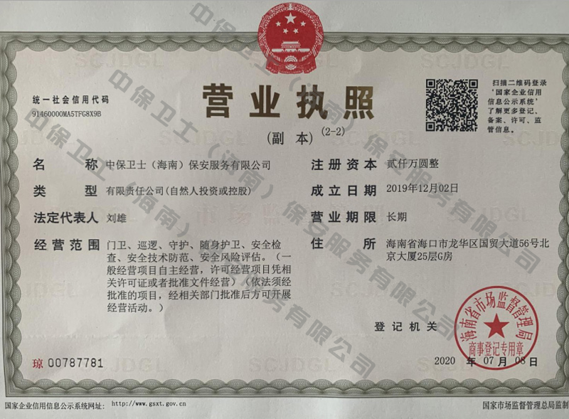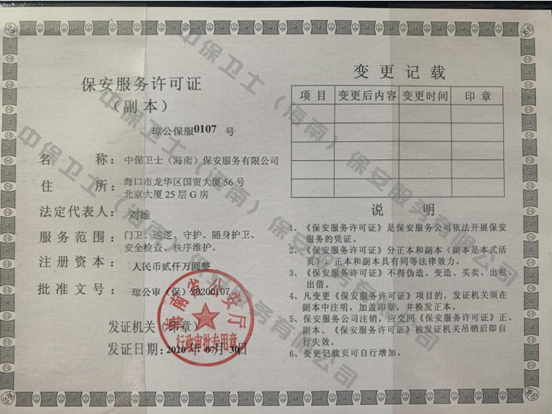 大发·体育-大发(中国)是经海南省公安厅批准,依法持有《保安服务许可证》,提供保安服务、门卫、巡逻、守护、区域秩序维护、随身护卫、安全检查的专业化保安服务公司。